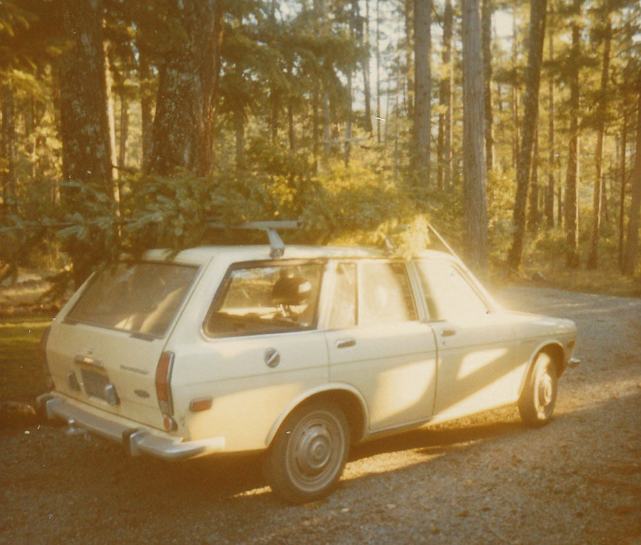 first station wagon – a light yellow Datsun wagon seen here ready to cart a