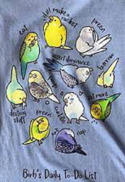Mom had this thing in the morning she’d do before she lifted my night cover. She’d whisper ‘sweet nothings’ to me, then say “There’s a little birdie in there. I know there’s a little birdie in there.” Then she’d raise the cover and because her sweet “Honey Bunny Boo” (ahem) had scampered across the perch to plaster himself against the bars of the cage ready to cuddle up to her, she’d say “There’s that little birdie in there. Hi, you.” And there’d be lots of kisses and smoochie sounds. Silly, maybe? But a great way to start the day!